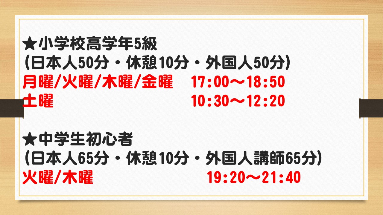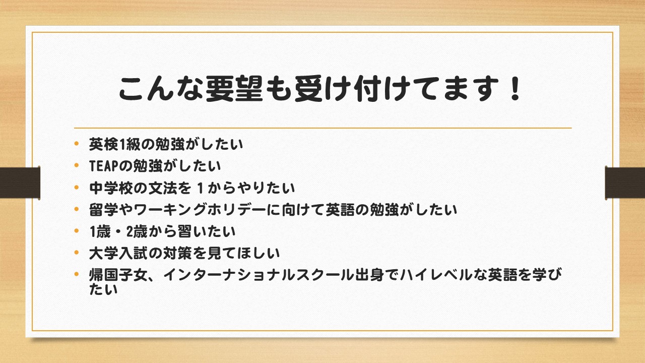 ・英語が初めての生徒様にも経験者の生徒様にも