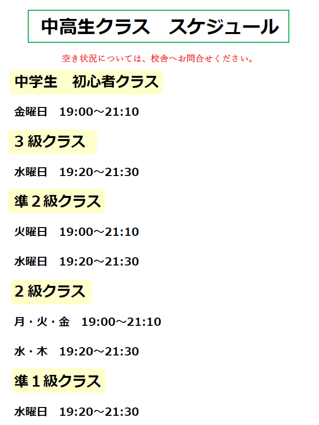 小学生経験者クラス(英検4級~2級クラス)スケジュールは校舎へお問い合わせください。