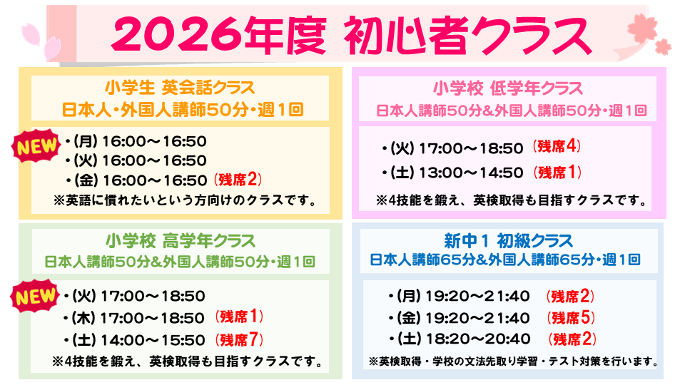 2026年度初心者クラス情報