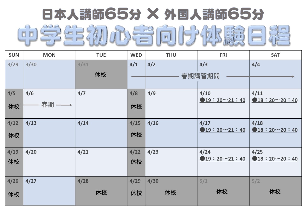 初心者の方は、4月スタートがスムーズに始められるラストチャンスです!
