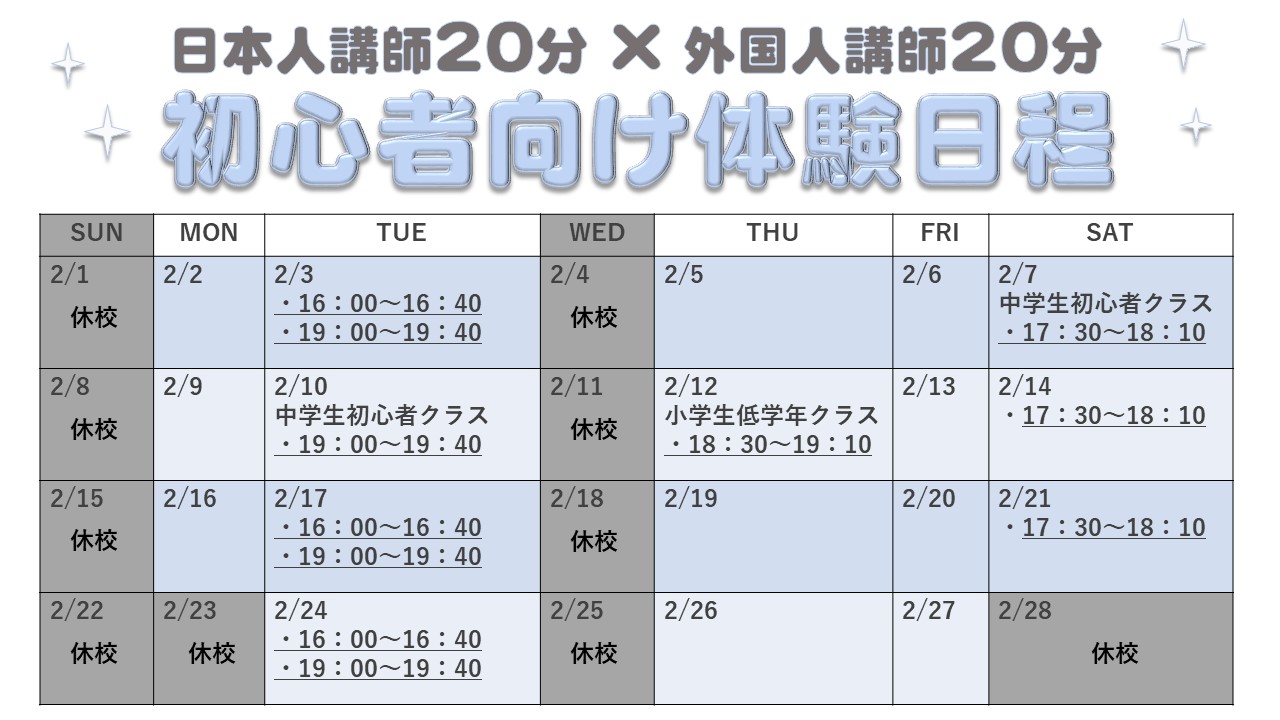 2/12(木)18:00~18:30 残席1
