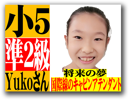 中1から英語を始めて、中2で高校中級レベルの準2級に合格!!今では2級クラスで頑張っています。ライティングの授業では「型」を学習し、自分の意見を書けるようにまでなりました。目標は高校生のうちに準1級を取得すること!そして医者になること!その優しさと知識で、世界中の子供たちを助けることのできる医者になり活躍できることを心から願っています!